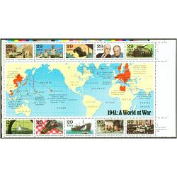 29¢ World War II, 1941 Souvenir Sheet of 10, Never Hinged