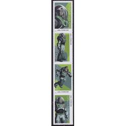 Set of Four Singles Evokes the holiday spirit with four new se-tenant stamps featuring a colorful digital illustration of elves preparing toys on a winding conveyor belt in a…