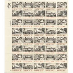 20¢ Architecture, sheet of 40, Issued to honor the architectural profession, four 20th-century architects: Frank Lloyd Wright's Fallingwater, Mies van der Rohe's Illinois Institute of Technology, the…